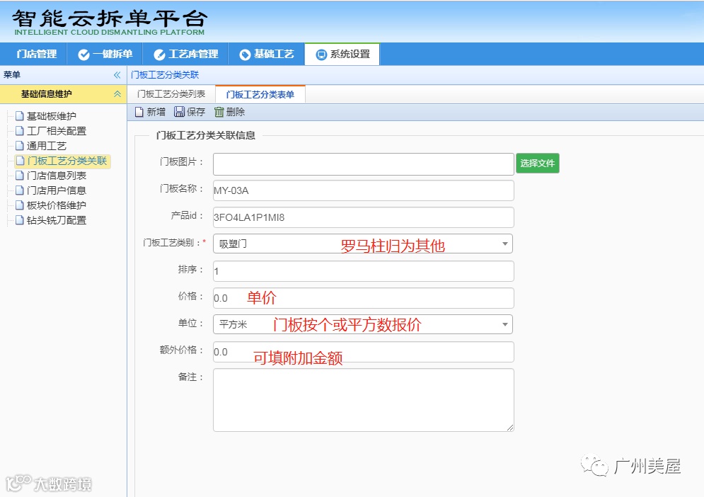 门板报价,可以设置单价,非标情况下可以增加金额,报价方式可以按个数化/平方数