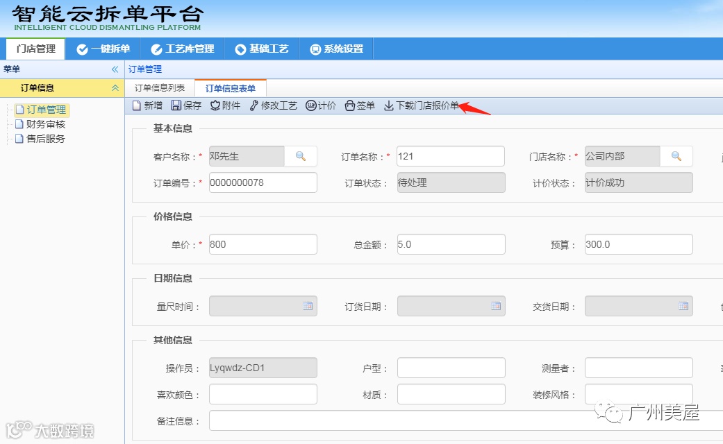 拆单后台五金设置单价