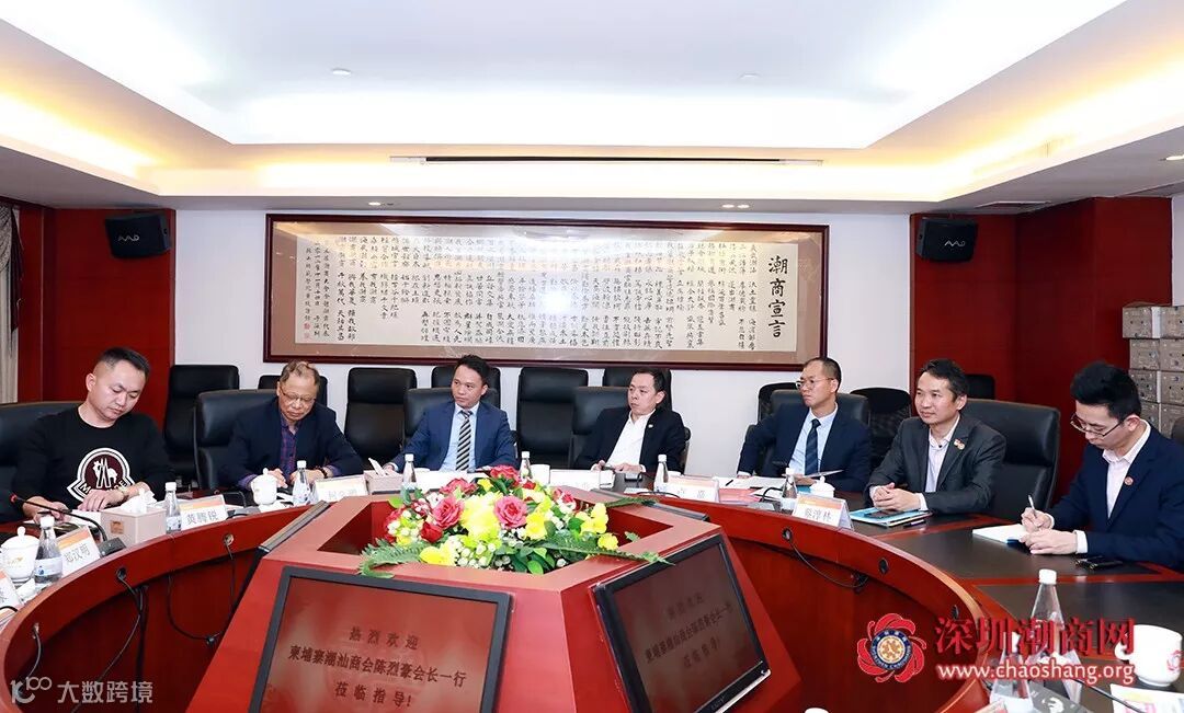 2019年12月23日下午,柬埔寨潮汕商会会长陈烈豪一行7人莅临深圳市潮汕商会访问交流,随同来访的有柬埔寨潮汕商会名誉顾问黄腾锐,副会长林文周、许文忠,柬华投资有限公司常务副总经理吴彩英、副总经理卢嘉,柬埔寨新天翼网络有限公司董事郑泽楠。