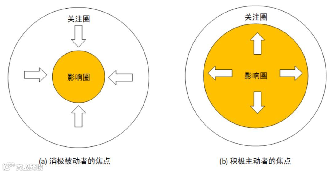 影响圈是你能够控制的,关注圈是你不能控制的,我们很多时候都把注意力放在了关注圈,导致迟迟无法行动,所以你需要把你的注意力放在影响圈,这样你能够控制的事就会越来越多。