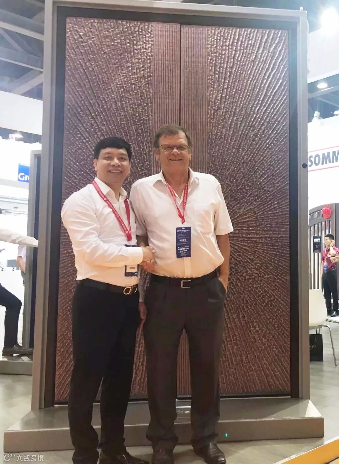 ▲我会常务副会长、家得福董事长郭永勇(左)与德国SOMMER集团董事长(右)合影