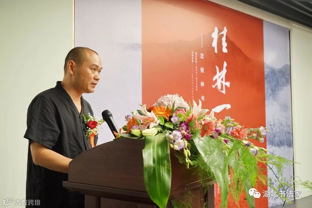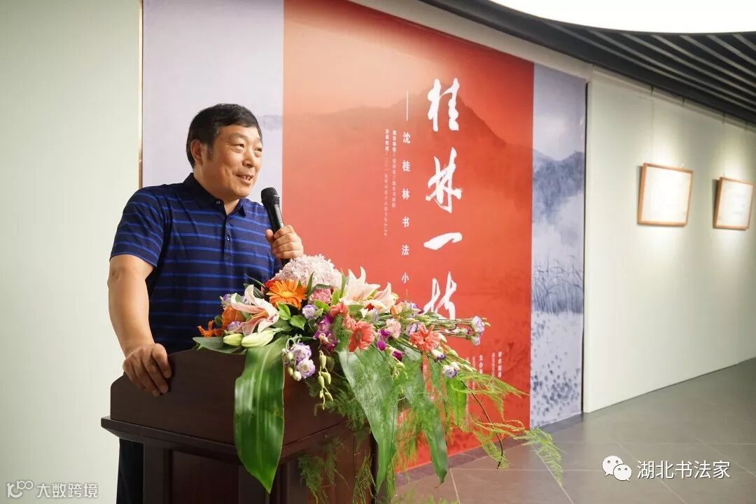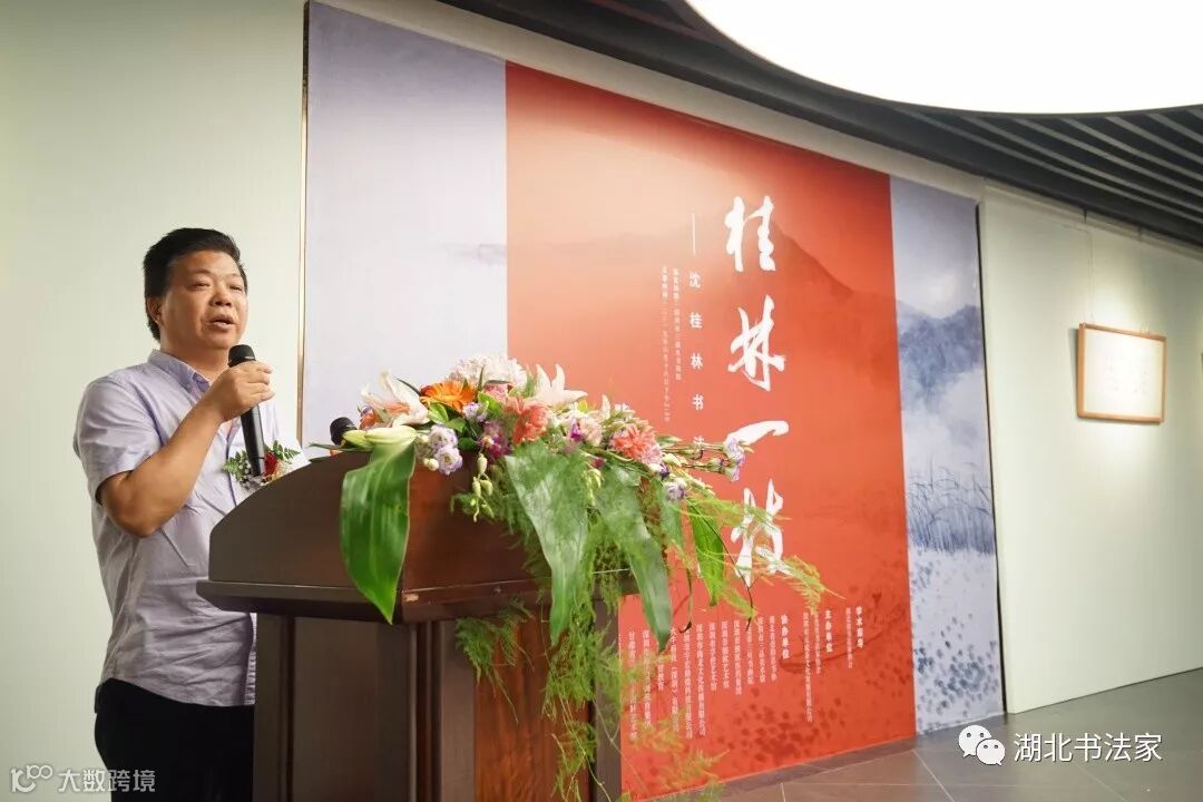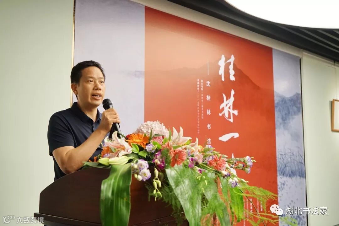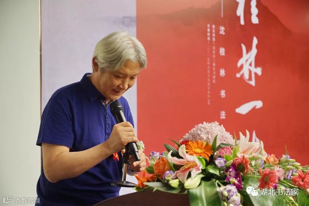 湖北省书法家协会秘书长李劲松先生代表湖北书法界,对客居岭南的沈桂林高品质的书展致以诚挚祝贺,他感谢广东书协对沈桂林的栽培和厚爱,期望沈桂林多回荆楚乡里传经送宝,反哺故土,为正在火热进行的全国第十二届书法展助力。