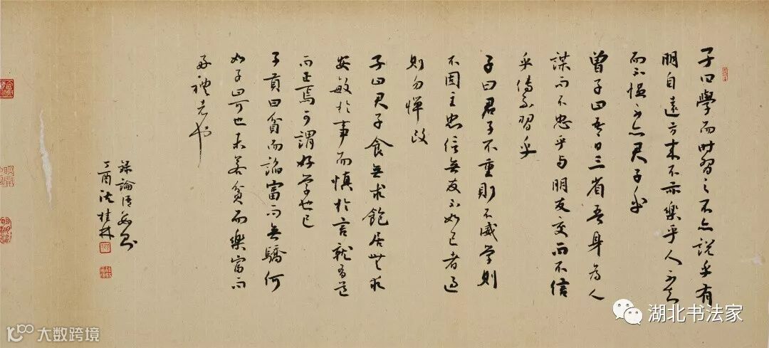 研讨会不知不觉进行了近两个小时,与会者意犹未尽。时近晚餐,吴师军老师做总结陈词:桂树成林,桂林而今只出一枝。他说,种瓜,未必得瓜;种豆,未必得豆。得否,关乎种子是否变异,关乎种植的土壤和环境。他引用梵高传记《麦田的守望者》中,梵高用牧师布道般的神圣口气说给弟弟提奥的一段话:“如果要生长,必须埋到土里去。我告诉你,将你种到德朗特的土地里去,你将于此发芽,别在人行道上枯萎了。你将会对我说,有在城市中生长的草木,但你是麦子,你的位置就在麦田里……”他说,沈桂林怀抱着书法这颗不改初心的种子,找准自己生发应处的位置,离开人们通行的道路,走在荆棘丛生的崎岖山路。假以时日,必能看到常人难得一见的、异样的风景!