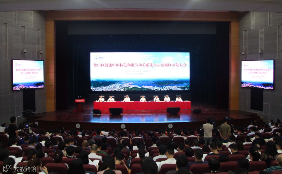 2019年8月20日下午,“创建中国特色和谐劳动关系先行示范城区动员大会暨专题培训会”在盐田会堂隆重举行。广东省人力资源和社会保障厅副巡视员林景青,深圳市人力资源和社会保障局局长孙福金,盐田区委书记陈清,盐田区委副书记、区长杨军等领导与企业代表近200人参加会议。