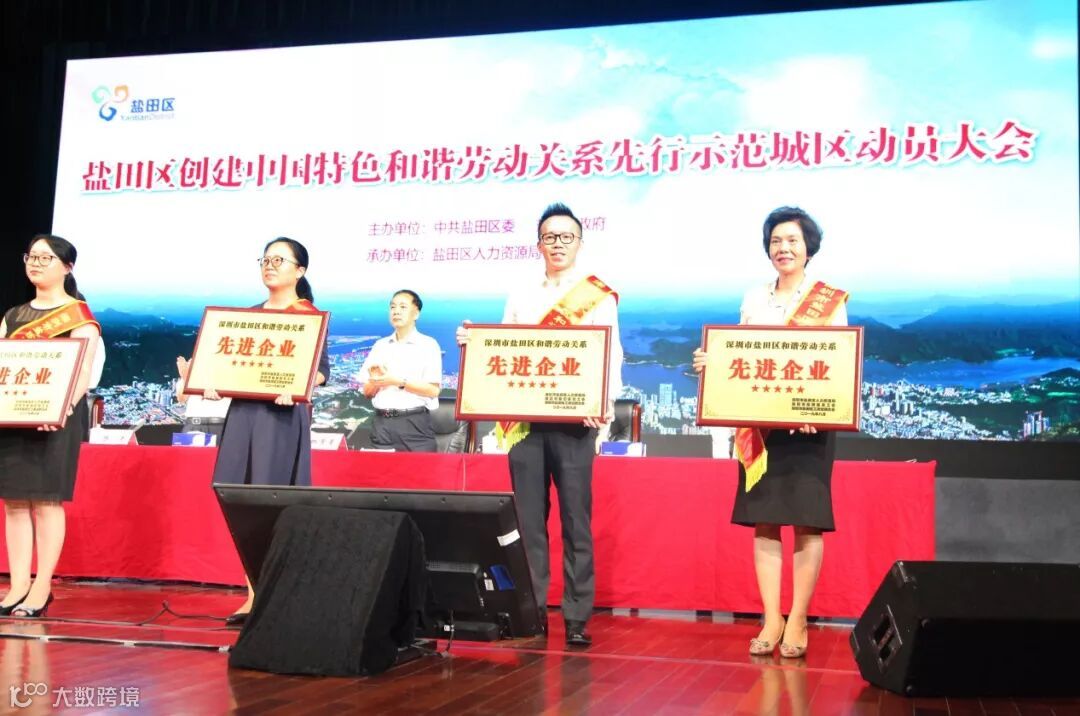 会议的一项重要议程是对盐田区和谐劳动关系先进企业进行授牌表彰。鉴于自身在构建和谐劳动关系建设方面所取得的突出成绩,我会名誉会长周桃林单位百泰集团获颁“盐田区五星级和谐劳动关系先进企业”。