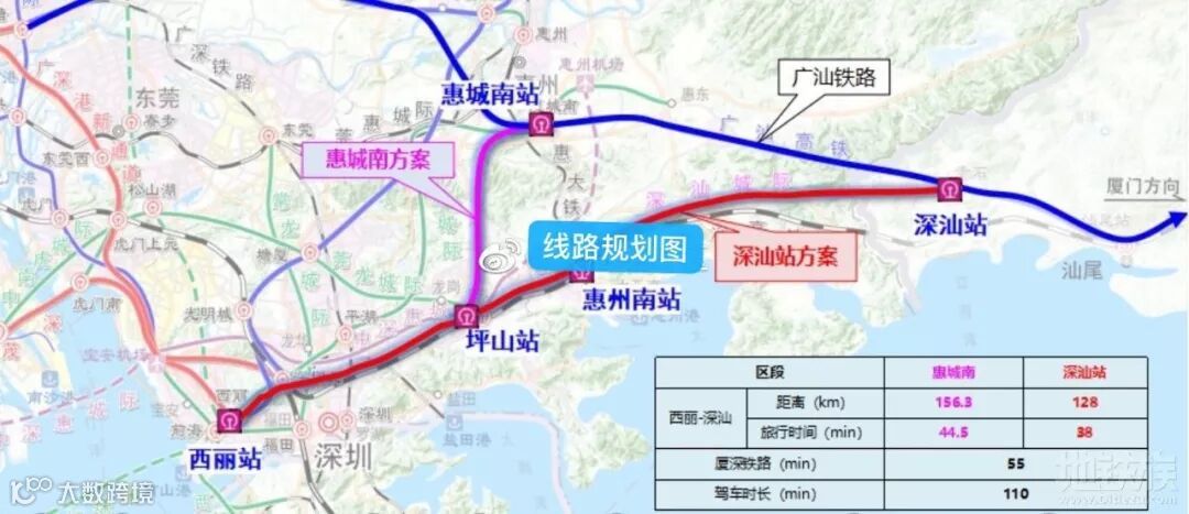 按照初步设想,深汕高铁在深圳区域内有一段与厦深铁路基本平行,从深圳西丽站引出,向东经过坪山高铁站、惠州站、终点到达深汕合作区内设立的深汕站。它虽然全长只有120多公里,但采用了时速350公里的高标准设计。
