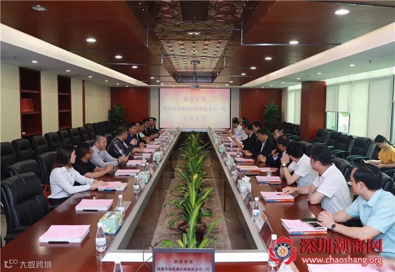 2019年4月24日上午,珠海市汕尾商会会长林祖武一行莅临深圳市潮汕商会访问交流,随同到访的有珠海市汕尾商会执行会长吴朝育,轮值会长高忠矿,轮值副会长翁玉民,常务副会长刘裕耀、林学武、王永顺、刘光宗,副会长兼常务副秘书长徐家平,常务副秘书长林永棠,副秘书长李彩丹等。
