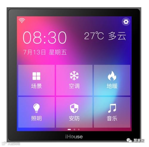 ▲智境全面屏场景面板可以实现全屏液晶触控操作,支持场景、灯控、温控、新风等控制,控制内容更加丰富,交互过程也更加流畅。