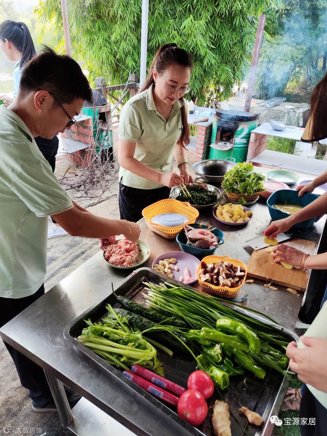 以最初的分队为单位,各队领取自己的食材,每个队伍自己分工合作制作今天的晚餐。