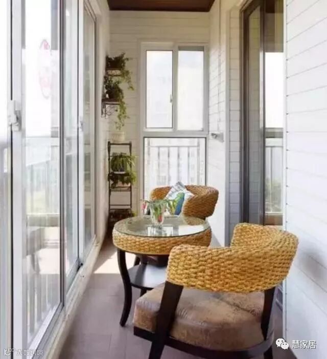 其实你家要是有两个阳台,完全可以把其中一个阳台改成休闲区;要是只有一个阳台,在阳台一侧摆放体积较小的休闲桌椅,晾衣服尽量晾在另一边,其实影响也不大。