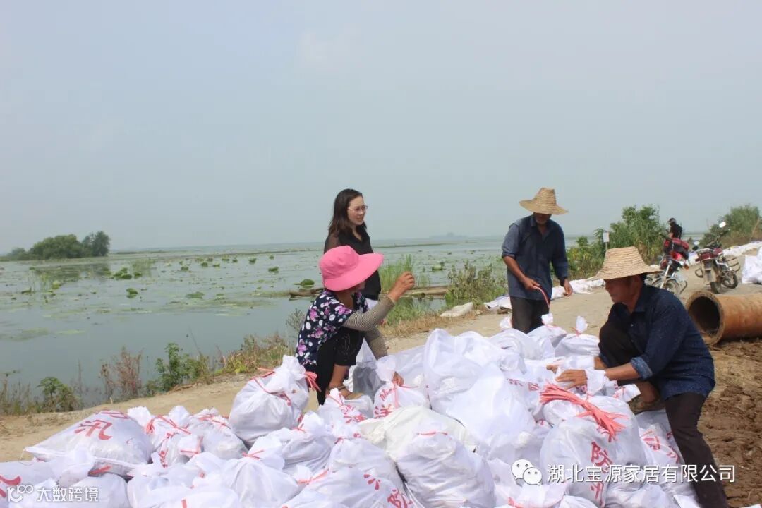 7月10日上午,由公司副总经理陈金凤女士带领团队前往抗洪一线,越靠近长湖,越感受到汛情的严重,沿路部分田地和住房都淹,受灾情况严重。到达长湖重点防汛区域之一沙洋县毛李镇幸福垸后,宋镇长热情接待了宝源家居慰问团队,并介绍了防汛工作的重要性以及汛情的紧急情况,陈总也表达了宝源家居与防汛干部群众“携手同心,共渡难关”的决心,以及宝源家居作为本土企业关爱家乡的社会情怀。随后陈总到堤坝上看了水位情况,也和现场的工作人员亲切的交流。当问到“天气炎热,还要坚守在堤上,每人还要装150袋沙辛不辛苦?”一位近60岁的大叔说“我家就在长湖边上,守住自己的家不辛苦”大叔的话让人肃然起敬,也代表了很多周边的民众的心声,他们都是自发参加抗洪的工作,为了自己的家而战斗,坚强、朴实而又可爱!看到我们的工作人员在搬物资,他们热情而主动上前帮忙,言语不多,用汗水和微笑回应!看到堤坝上搭起的帐篷,由沙袋筑起的长长的墙,以及日夜坚守在一线的干部和群众,这些深深温暖了我们的心。我们相信洪水无情人有情,有日夜奋战的干部和群众,有社会各界的关心和援助,一定会战胜这次洪灾!