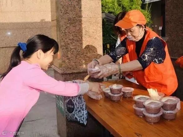 义工们每天奉送600多份爱心粥,两年来一共送出了40多万份,每一份都有义工们的爱和温暖。