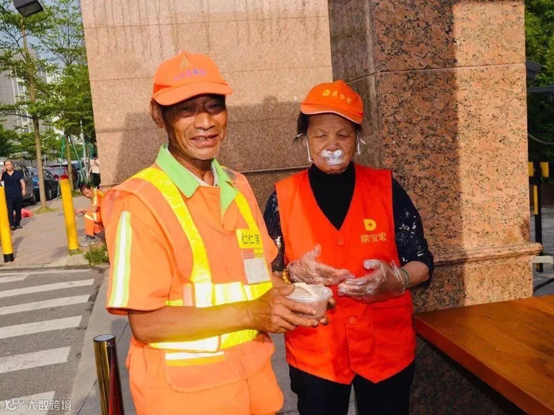 800多个清晨,宏齐光志愿服务队义工们准时出现在园区前、后门,向附近的环卫工人及一些员工家属免费奉送粥品,风雨无阻。