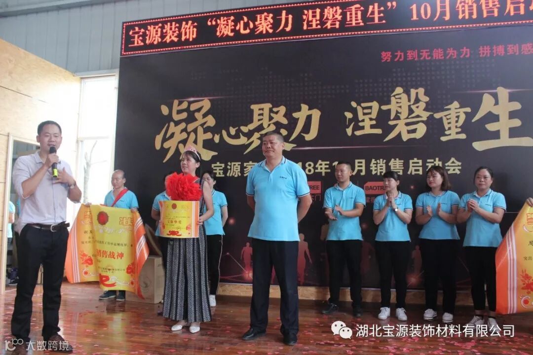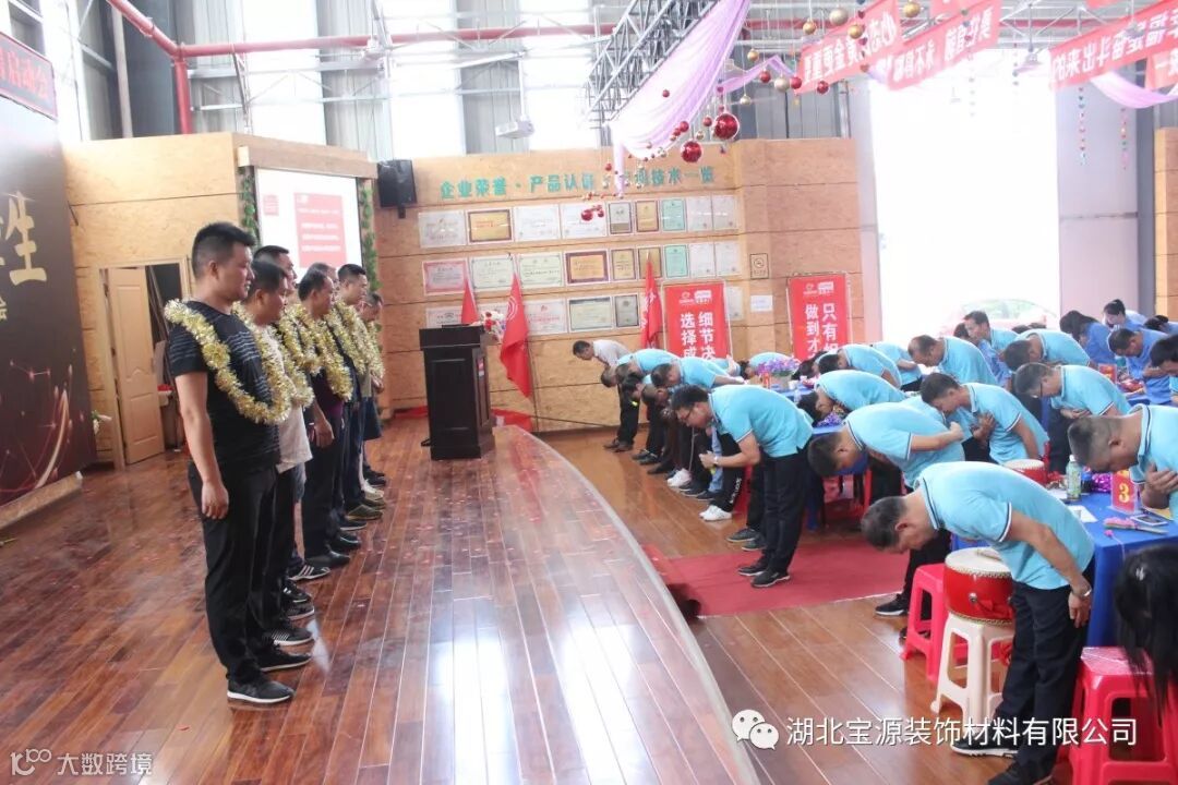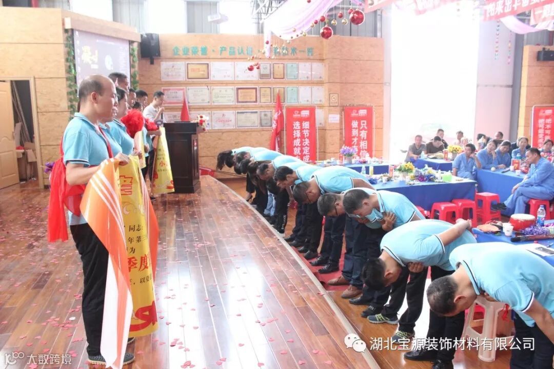 企业的发展离不开公司所有家人的努力,更加离不开所有客户的信任和支持,因为有了这些愿意和宝源同甘共苦,携手共进的忠实客户,我们每个人才得以实现梦想。落地委正能量部长廖锐带领全体宝源家人向他们行感恩礼,宝源因为有他们而更加精彩。此次会议对9月销售工作进行了总结,同时公布了三季度工厂团购会的目标及完成情况,朱总对团购活动中涌现出的前三名经销商韩丁华先生、王建德先生、曾凡宝先生颁发了荣誉奖杯,感谢他们的付出和努力。