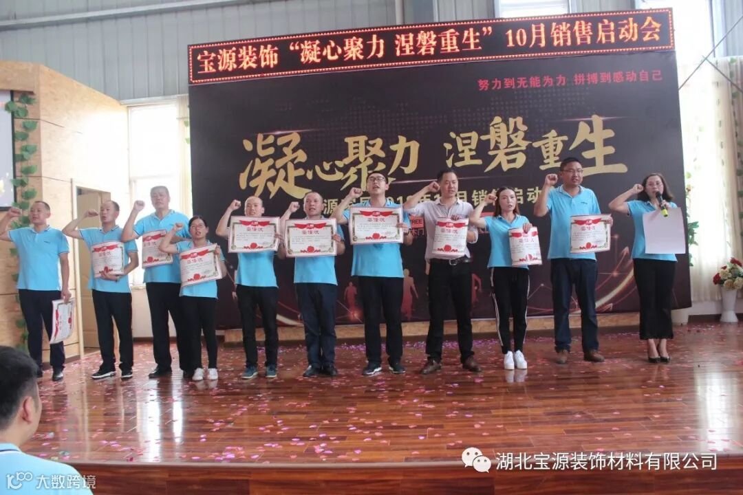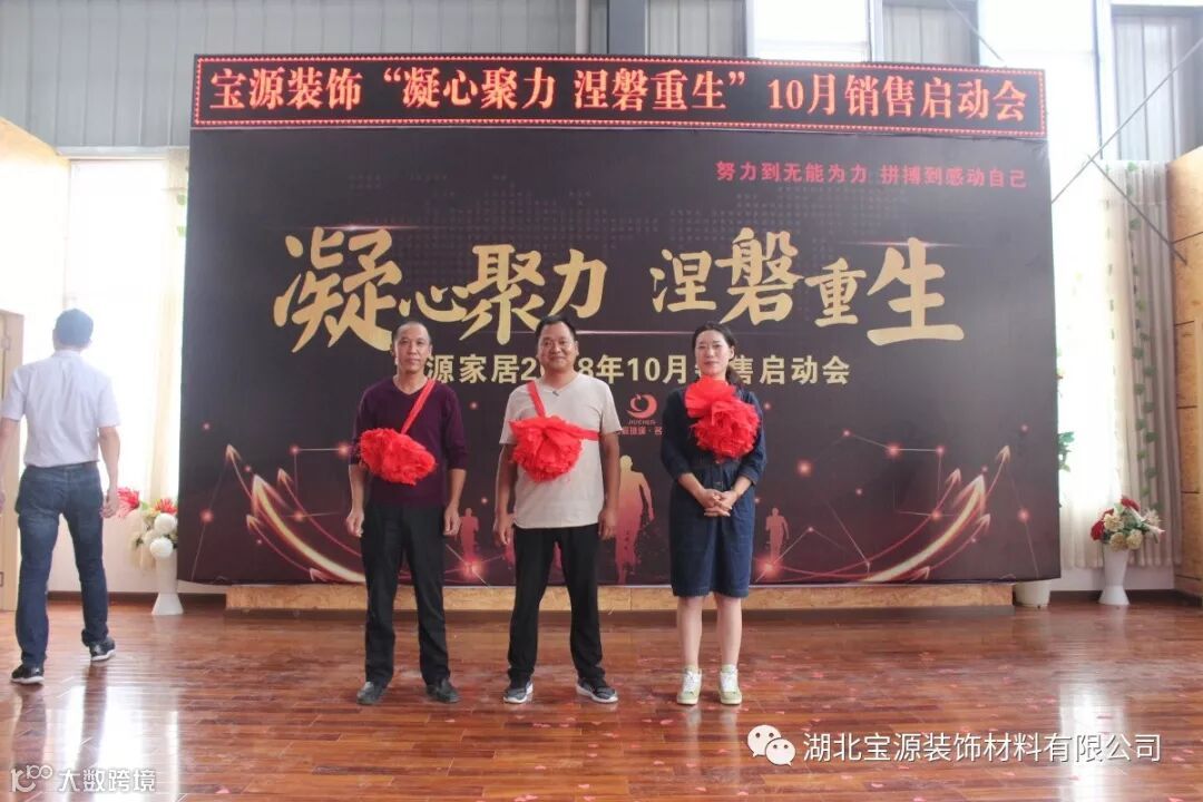 2018年9月19日,以“凝心聚力涅磐重生”为主题的十月销售启动会议在公司新展厅召开。会议特别邀请到玖零落地王杰老师及助理和湖北宜昌、当阳、远安、襄阳、京山、钟祥、沙洋等各地优秀经销商为宝源加持能量。