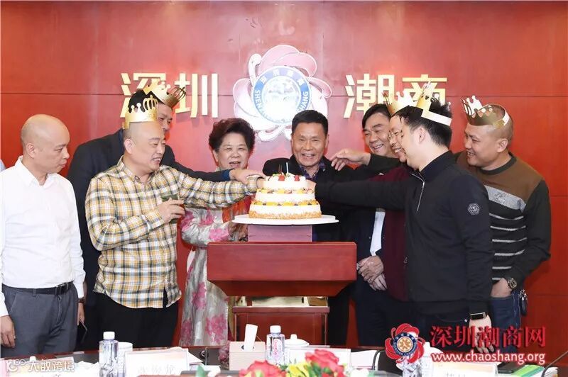 茶话会期间,商会为一月份的寿星杨德辉、罗卓然、蔡悦高、许泽平、黄锐佳送上生日蛋糕和一幅潮绣珍品作为生日贺礼。