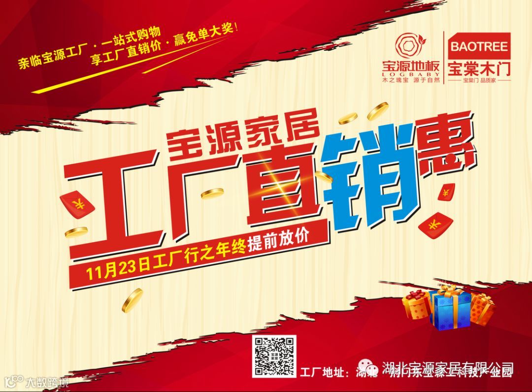 11.23到宝源家居工厂,实地见证宝源品质,亲眼目睹宝源地板、木门的整个生产过程。活动当天均由免费大巴接送!