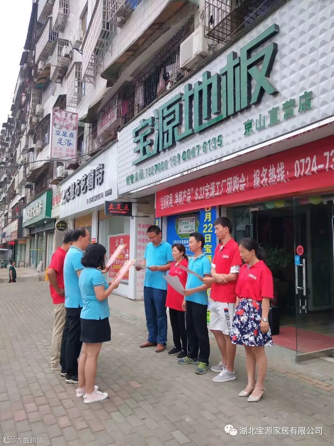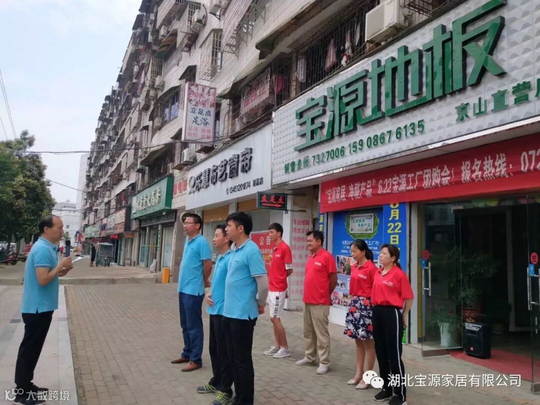京山宝源地板旗舰店位于当地建材市场,主要销售宝源实木地板、多层地板、OSB地板、强化地板。自2003年建店以来,凭借着宝源地板高品质的产品和专业的热情的服务赢得了京山当地消费者们的信赖和支持。其店面综合实力强,有稳定的销售渠道,希望通过公司的帮扶,实现稳步发展,逐步发展成为超级大商俱乐部一员。6月10日,公司市场部经理黄明生带领行销活动团队,对京山店面进行大商打造。
