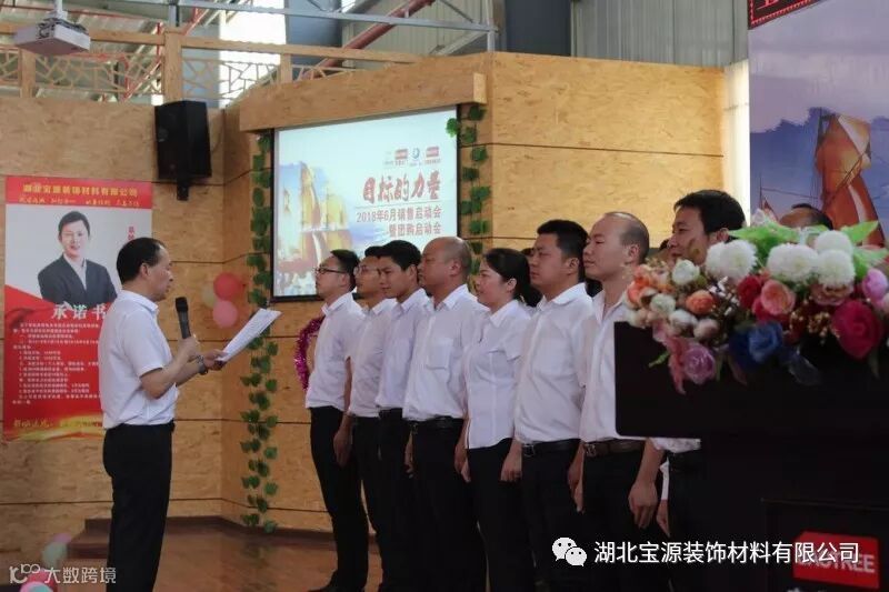 此次会议对5月销售工作进行了总结,同时也对6月的销售工作和第二季度工厂团购制定了目标。第一季度的工厂团购战果累累,取得了的骄人成绩,同时为6月团购打下了坚实基础。每一次的收获都离不开宝源家人们的努力和付出,更离不开优秀经销商伙伴们的鼎力支持。天使为经销商家人们戴上了美丽的花环,运营保障部部长黄明生带领全体宝源家人们向他们行感恩礼,感恩他们选择宝源不离不弃,感恩他们的支持和信任,感恩他们的付出……我们始终心怀感激,让我们携手走的更高,更远。湖北大区经理聂雪涛现场做出团购承诺,郑重的承诺时刻激励着我们。