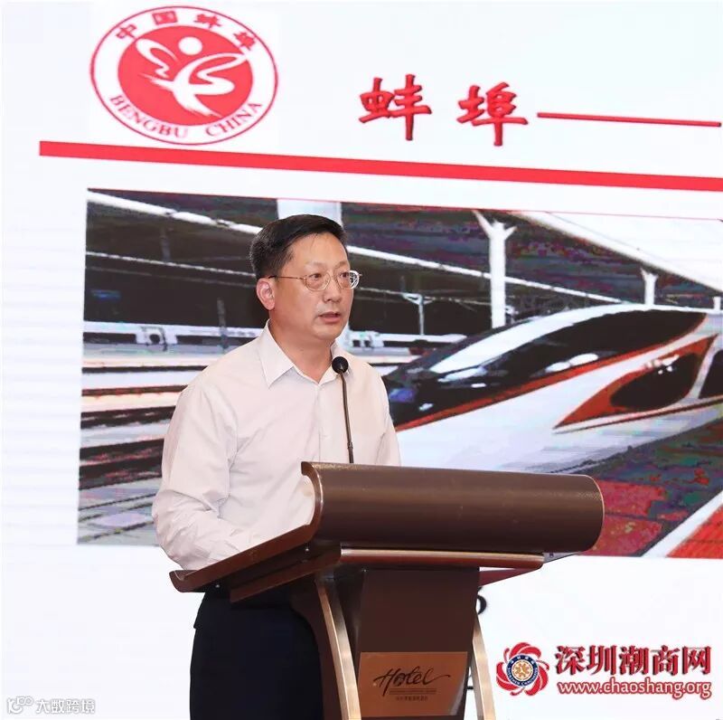 他表示,蚌埠作为区域中心、交通枢纽、工业大市、商贸重镇、科教之城、创新高地,创新发展有优势,协调发展有后劲,绿色发展有潜力,开放发展有机遇,共享发展有基础。真诚地欢迎大家多来蚌埠做客,领略淮河两岸的风土人情,感受珠城大地的创业激情。我们将热忱欢迎一切有识之士来蚌投资兴业,共寻合作商机,共谋发展大计,共创美好未来。