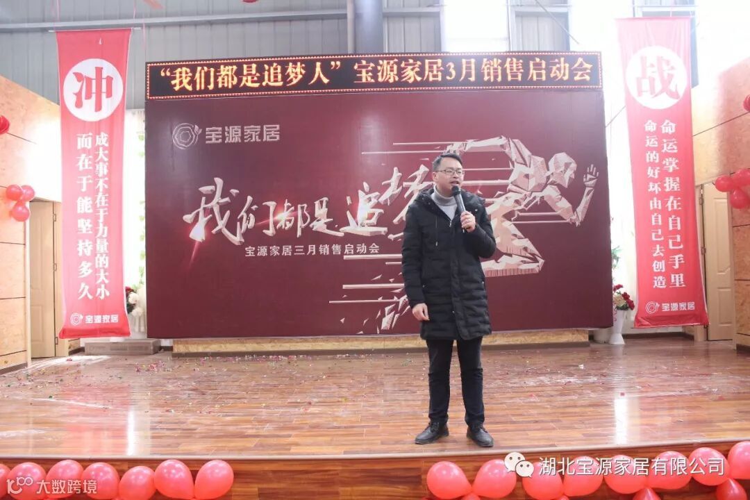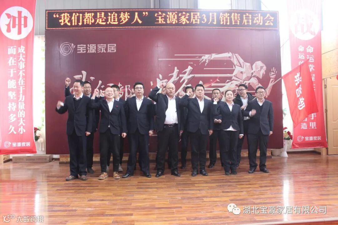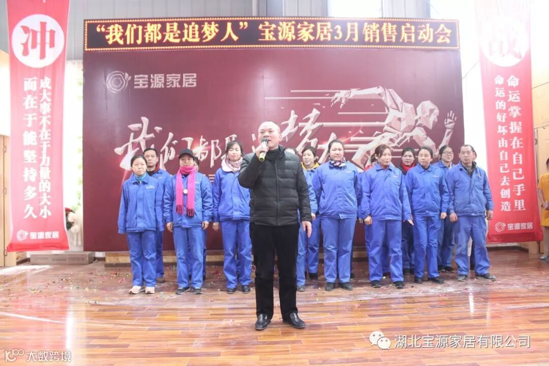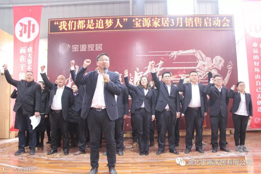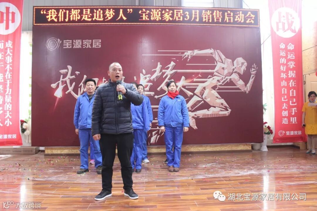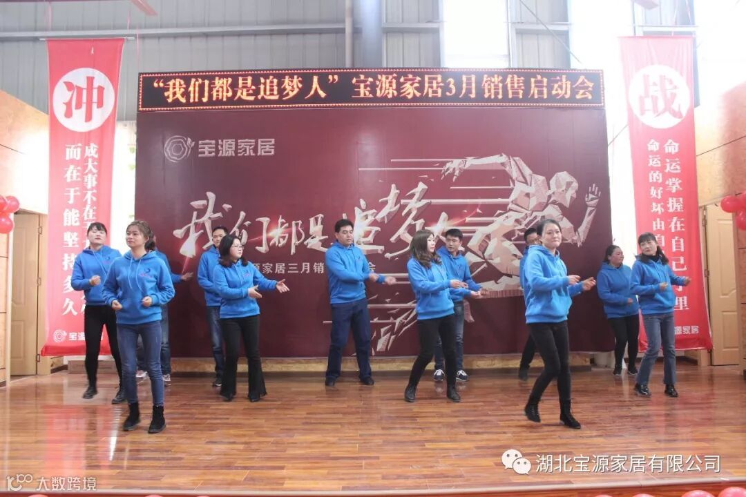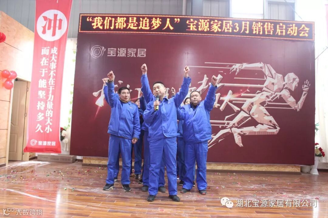 走过往昔,奋斗的汗水刚刚拭去,2018年的钟声也离我们而去。展望明朝,2019年的脚步正迈向我们。2019年2月23日下午,宝源家居三月销售启动大会在公司新展厅如期举行。启动会以“我们都是追梦人”为主题,这是宝源家居对新一年的展望与目标。启动大会不仅营造了公司氛围,更是加强了团队凝聚力、激发了拼搏奋进精神。