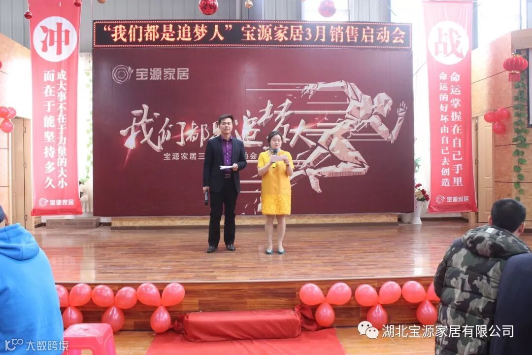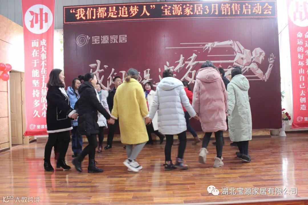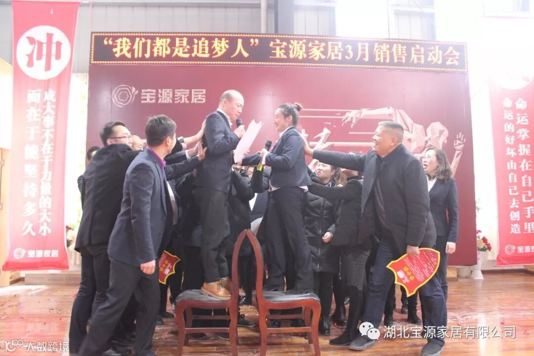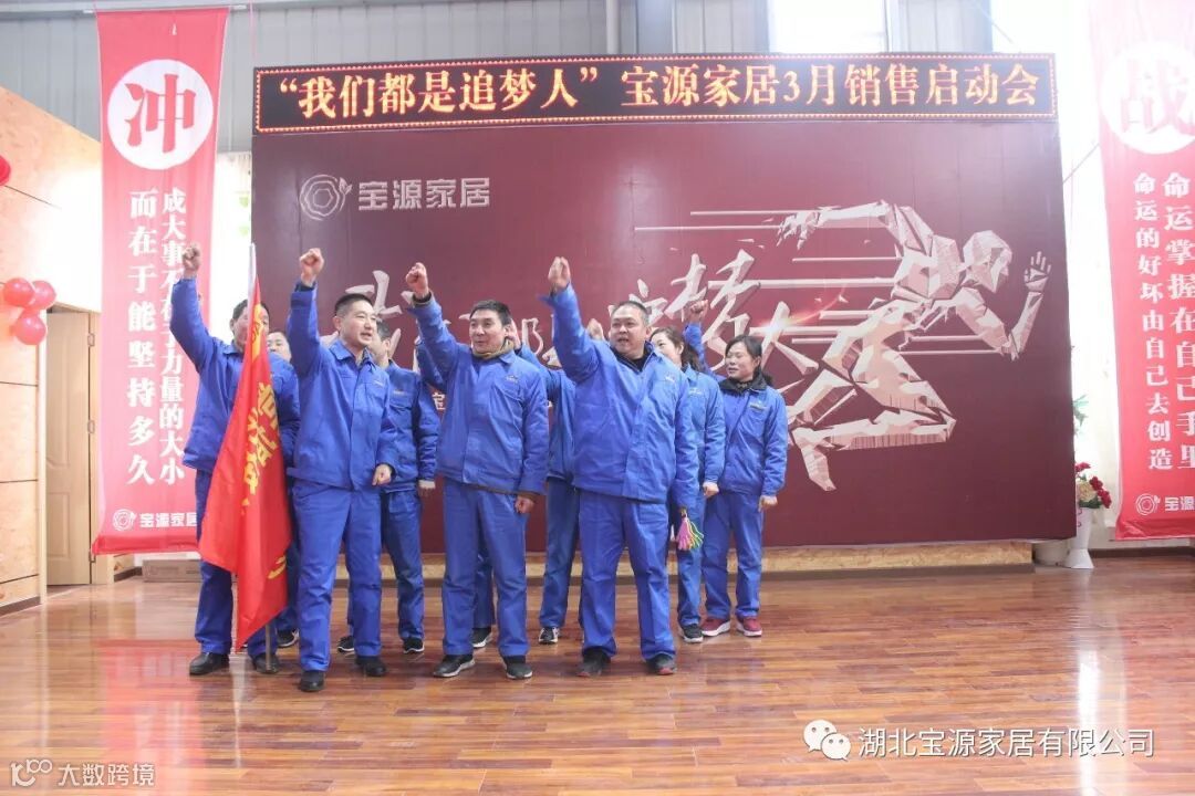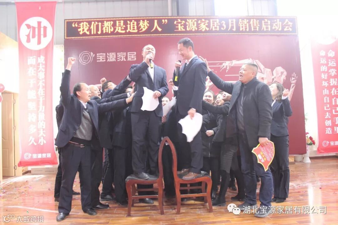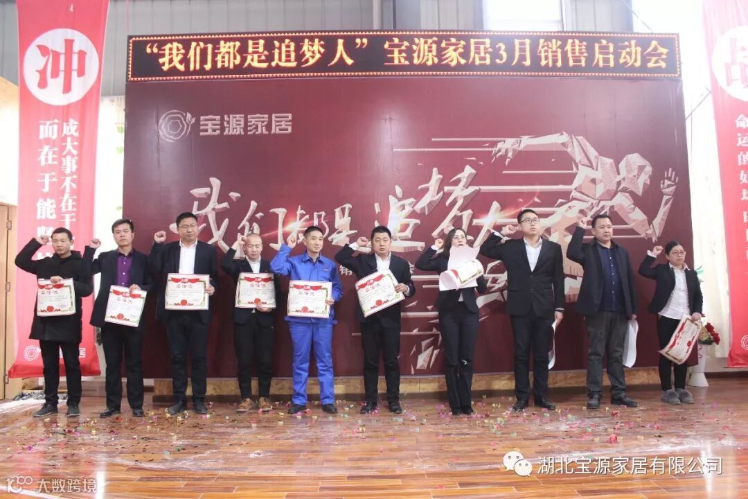 走过往昔,奋斗的汗水刚刚拭去,2018年的钟声也离我们而去。展望明朝,2019年的脚步正迈向我们。2019年2月23日下午,宝源家居三月销售启动大会在公司新展厅如期举行。启动会以“我们都是追梦人”为主题,这是宝源家居对新一年的展望与目标。启动大会不仅营造了公司氛围,更是加强了团队凝聚力、激发了拼搏奋进精神。