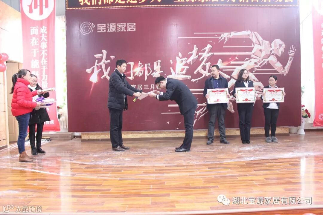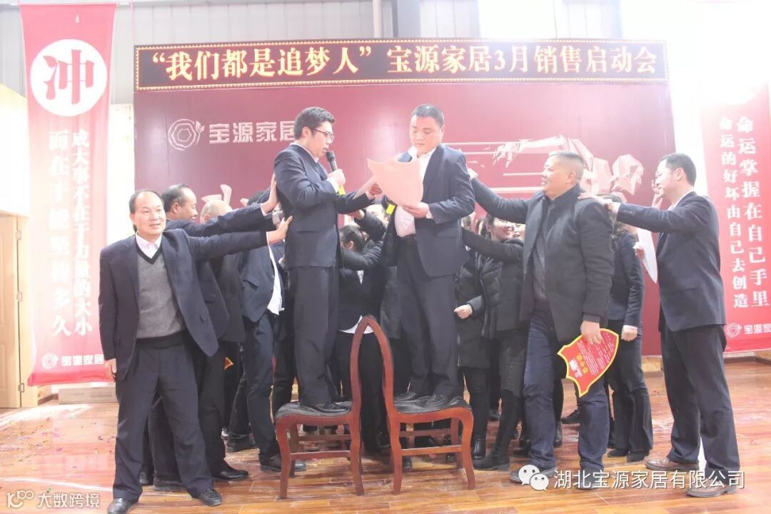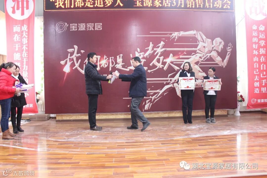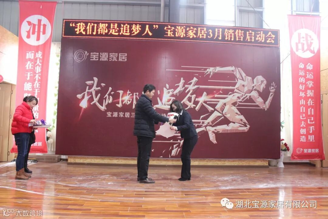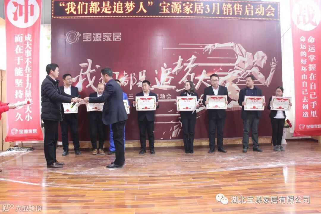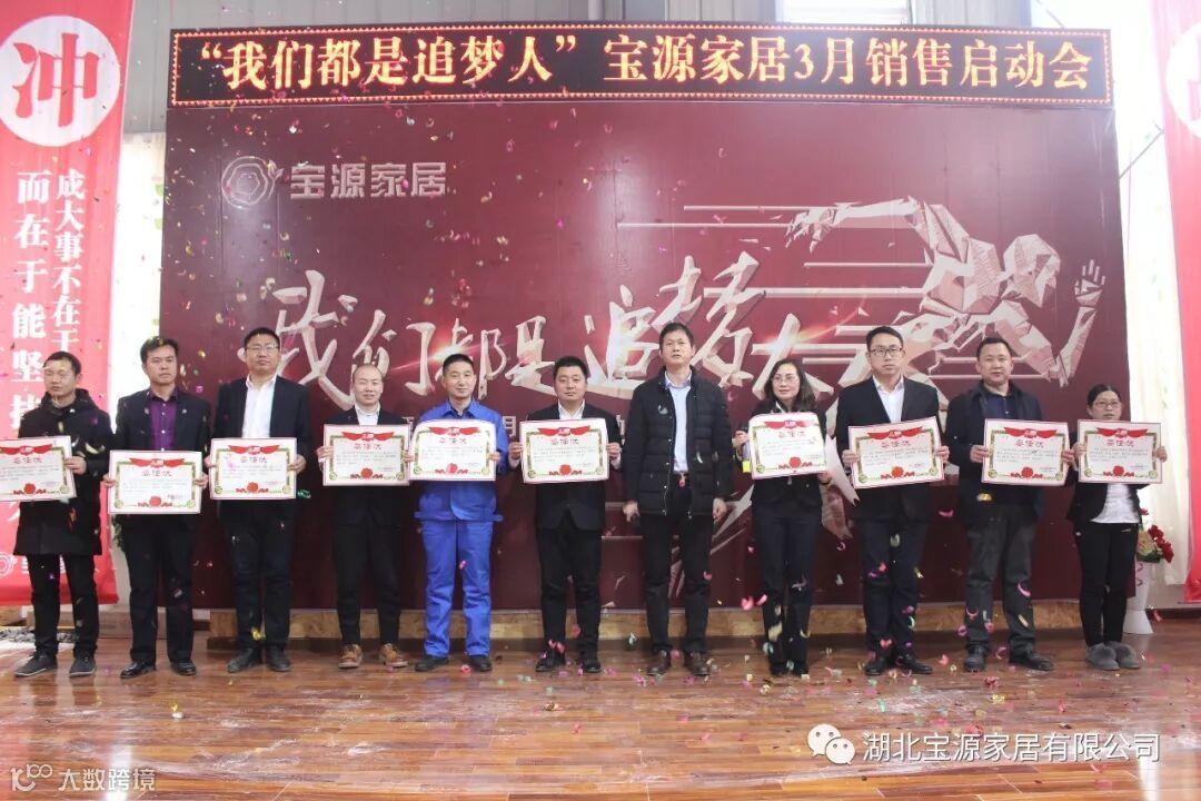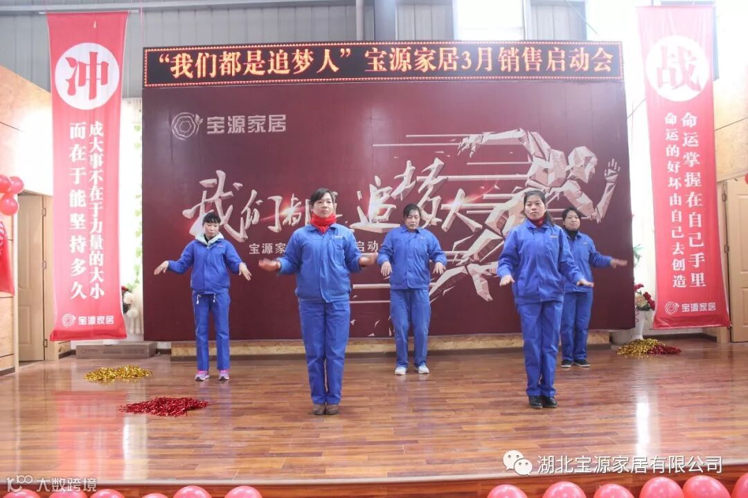 走过往昔,奋斗的汗水刚刚拭去,2018年的钟声也离我们而去。展望明朝,2019年的脚步正迈向我们。2019年2月23日下午,宝源家居三月销售启动大会在公司新展厅如期举行。启动会以“我们都是追梦人”为主题,这是宝源家居对新一年的展望与目标。启动大会不仅营造了公司氛围,更是加强了团队凝聚力、激发了拼搏奋进精神。