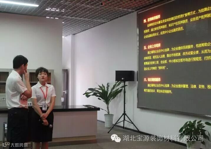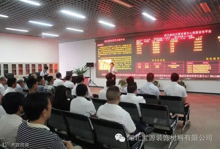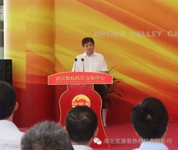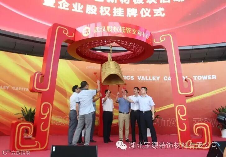 2016年8月18日,包含湖北宝源装饰材料有限公司在内的30家荆门东宝区企业在武汉股权托管交易中心鸣钟挂牌,正式登陆资本市场,“东宝绿色新材板块”由此诞生,与“京山高端装备制造板块”、“京山农产品加工板块”和“荆门掇刀区板块”3个县域特色板块一起形成了一批挂牌企业产业集群。此次公司在武汉股权托管交易中心成功挂牌,为企业今后的发展壮大提供了一个新的发展平台,截至目前,全市在四板挂牌交易企业达62家。