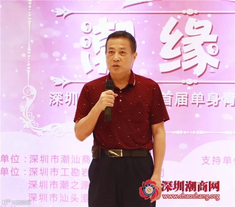 深圳市汕头澄海商会会长、我会名誉会长朱英顺鼓励青年男女积极参与活动,他表示,深圳市潮汕商会精心策划的此次活动,让大家有缘相聚于此。深圳市汕头澄海商会有40多位男女嘉宾踊跃报名,澄海人务实、低调和优秀,很值得大家去爱,希望大家抓住机会,为爱大胆向前冲。