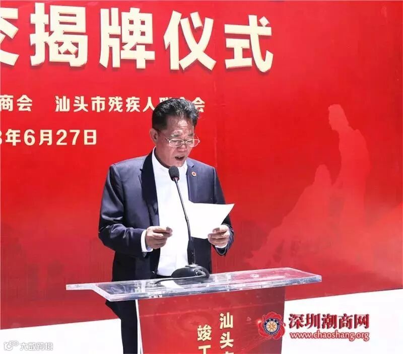 2018年6月27日上午,在第九个“广东扶贫济困日”的前夕,由深圳市汕头商会和汕头市残疾人联合会(以下简称“汕头市残联”)共同举办的汕头市慈爱托养中心竣工移交揭牌仪式在汕头市特殊教育学校内托养中心大楼前隆重举行。据悉,该中心的落成,实现汕头市公立残疾人托养机构零的突破,对于加快推进该市残疾人基本公共服务托底补短工作具有重大意义。