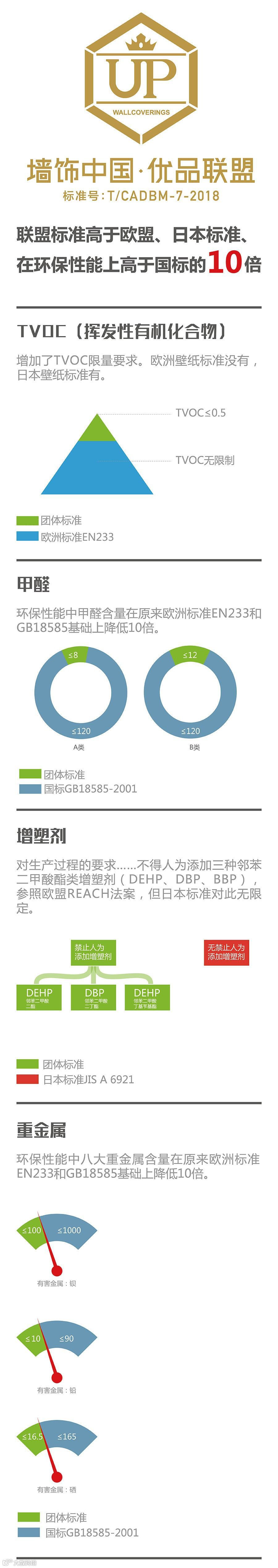 中国建筑装饰装修材料协会副会长兼秘书长张乃岭在发布会上说:今年1月1日国家《标准法》最新修订版正式开始实施后,墙纸墙布分会与10家首批联盟发起企业共同努力,专为优品联盟制定的团体高标准即将完成。此标准将有90%以上指标大幅优于国标、部分指标将比欧盟和日本等行业领先的标准更加严格。