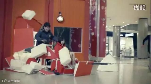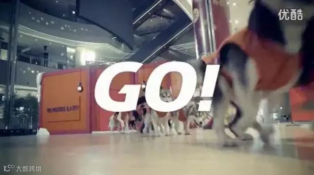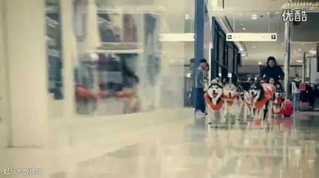 顾客真的被一群狗狗拉着在商场里狂奔,真真体验了一把梦幻变现实的穿越,并且在终点处还挂着The North Face的衣服,等顾客拉下拿走。