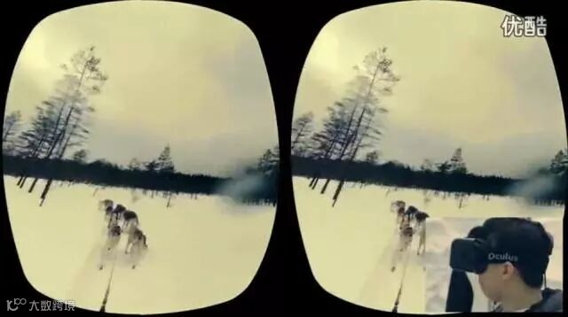 顾客穿着衣服,坐在雪橇上,带上VR眼镜,体验置身冰原,被一群哈士奇狗狗拉着狂奔的奇妙享受。