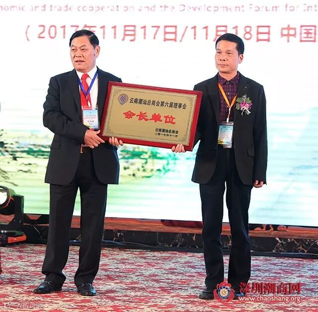 论坛结束后,深圳市潮汕商会与云南潮汕总商会签署了联合参与“一带一路”建设框架协议,吴木棠会长与沈乐安会长作为两会代表上台签约。