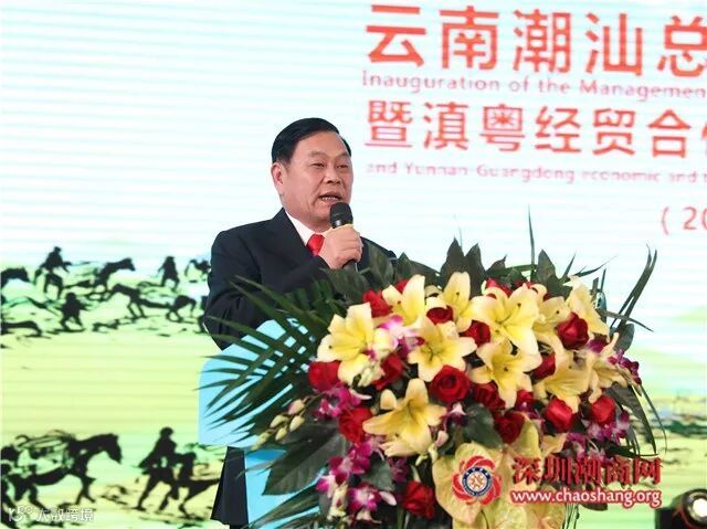云南潮汕总商会新一届会长沈乐安致辞。他表示在云南兴业发展的潮商,足迹遍布云南,涉及各行业。在滇潮人潮商,不忘初衷,与时俱进,积极融入云南,热爱云南,扎根云南,建设云南。近年来,在滇潮商抓住国家西部大开发,云南桥头堡建设和国家一带一路建设的发展机遇,在各大领域表现出色,成为云南经济发展,社会文化繁荣的重要力量。