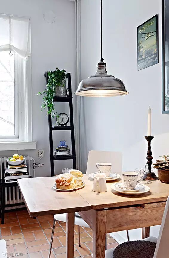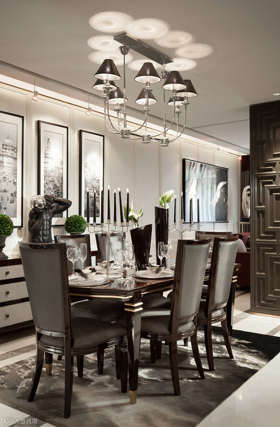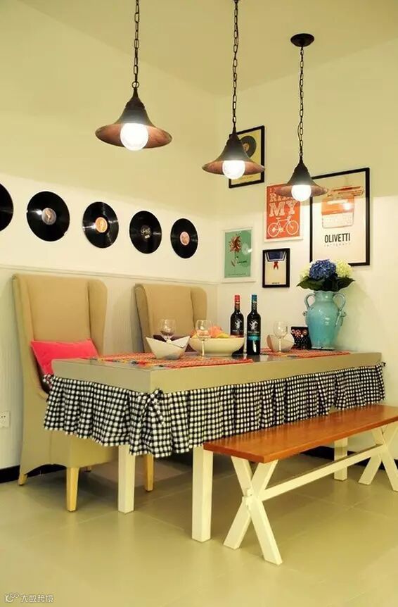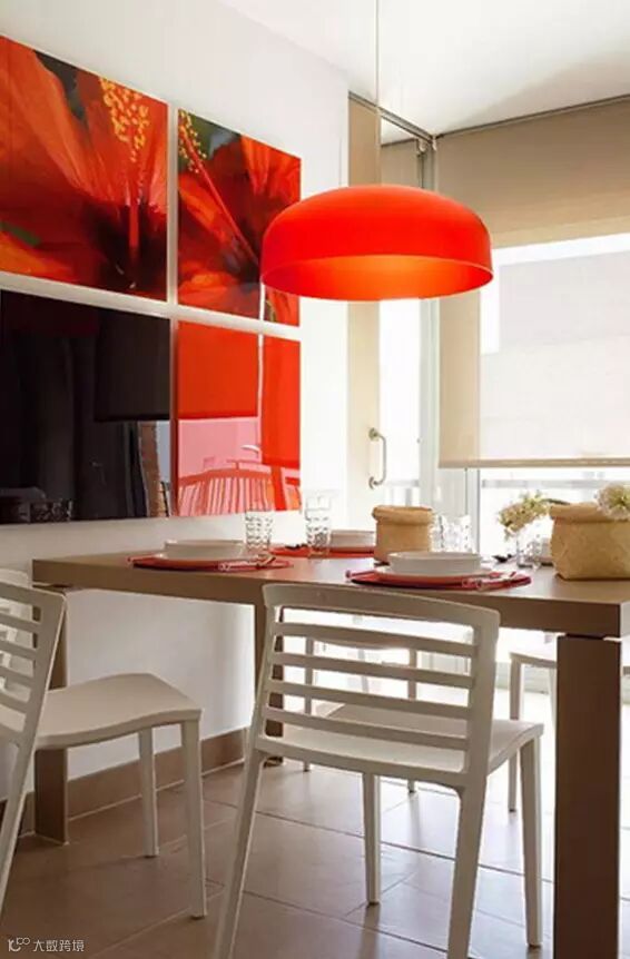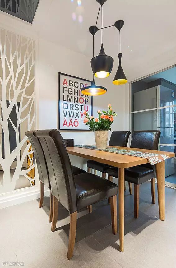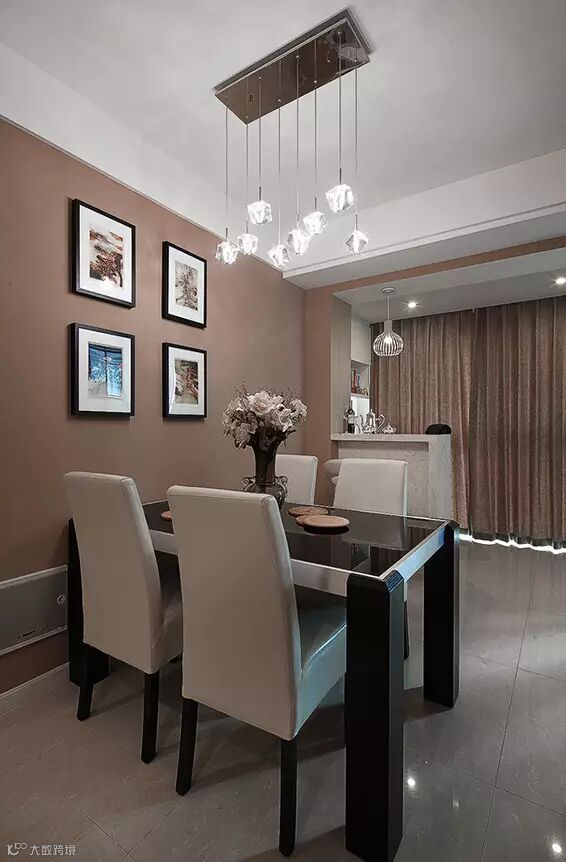 吊灯是最常见的餐厅灯饰,可以做成各种形状,形成一道独特的风景线。