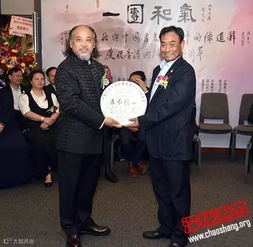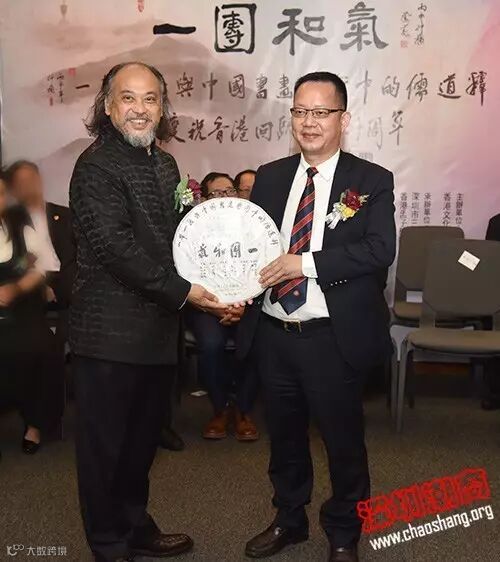 我会轮值会长钟美财代表商会致辞。他说,此次邀请展的书画艺术作品生动再现了“一带一路”的千年辉煌,向大家开启了了解儒释道文化的大门,进一步弘扬传统文化,祈福世界和平。他说,在庆祝香港回归祖国二十周年之际办展,进一步推动了内地与香港的文化交流和民心相通,使炎黄子孙在“一团和气”中更好地团结在一起。