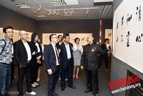 钟美财轮值会长与出席的领导一同为“一团和气一带一路与中国书画艺术中的儒道释 庆祝香港回归祖国二十周年”邀请展剪彩,共同祝愿此次邀请展取得圆满成功!