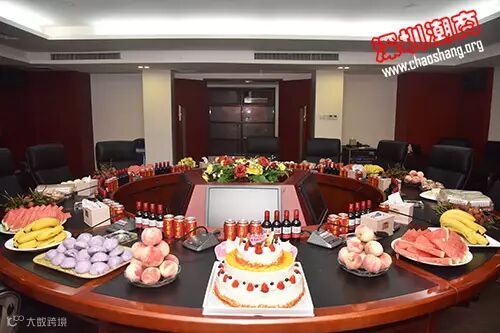 驻会会长黄育宏代表商会送上鲜花、生日蛋糕和生日贺礼。大家与邓东书记一起过一个温馨、热闹的生日聚会。
