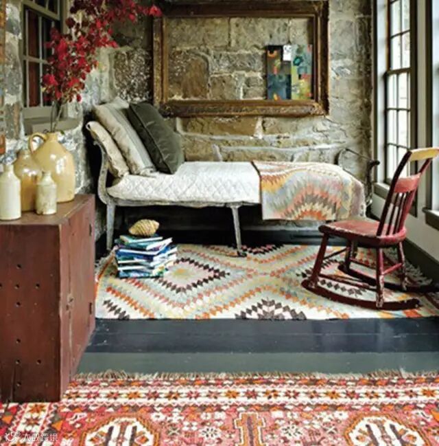 可以挑选色彩鲜艳、跳跃的地毯、坐垫,