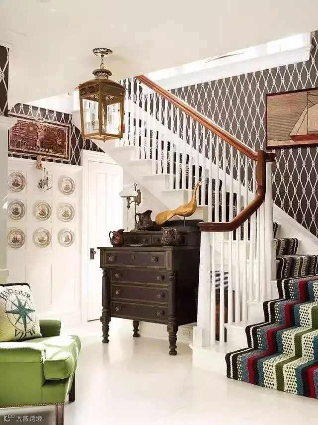 墙纸除了装饰墙面,原来还能让楼梯大方光彩,算是学到了!
