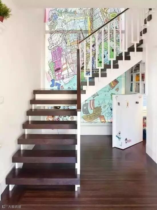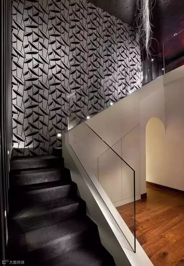 别墅或者复式结构的房屋中,楼梯是必不可少的,作为一种无可代替的空间连接的载体,除了自身的造型和线条感,你会用什么来装饰它呢?每天来来回回、上上下下这么多次,楼梯待在角落太孤单了,今天小编就带大家来看看用墙纸装饰出的楼梯吧~