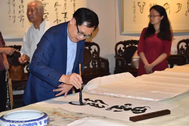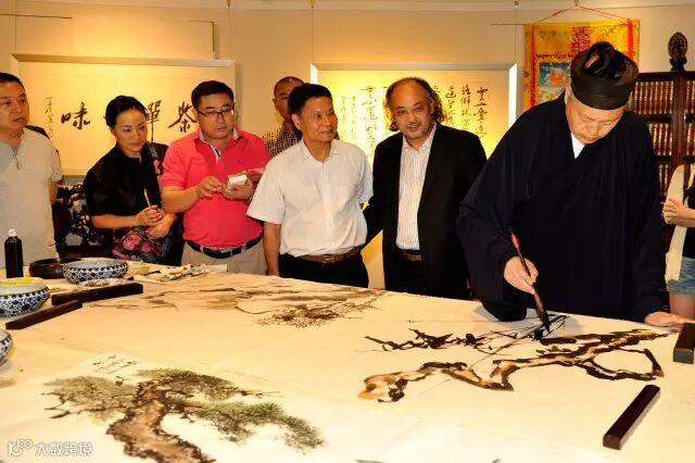 与此同时,由儒家代表饶宗颐、道家代表任法融及佛家代表释本焕挥毫的三幅主题书法作品“同心同德”亦在此次展览上展出。正如三滴水书画院执行院长谢学源先生所言,“这次