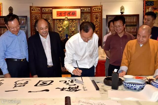 马来西亚拿督谢福坚、菲律宾佛教总会会长释道元更是专程由国外飞抵深圳三滴水书画院参与此次书画展的开幕式。所以此次展览无论是从参展人员与作品规模来说,还是开幕式现场的领导和嘉宾,都可谓盛况空前。