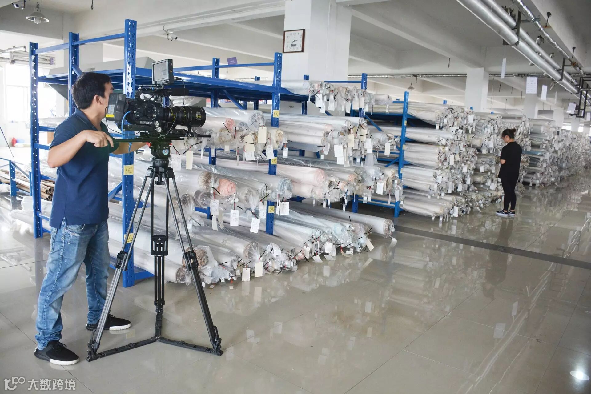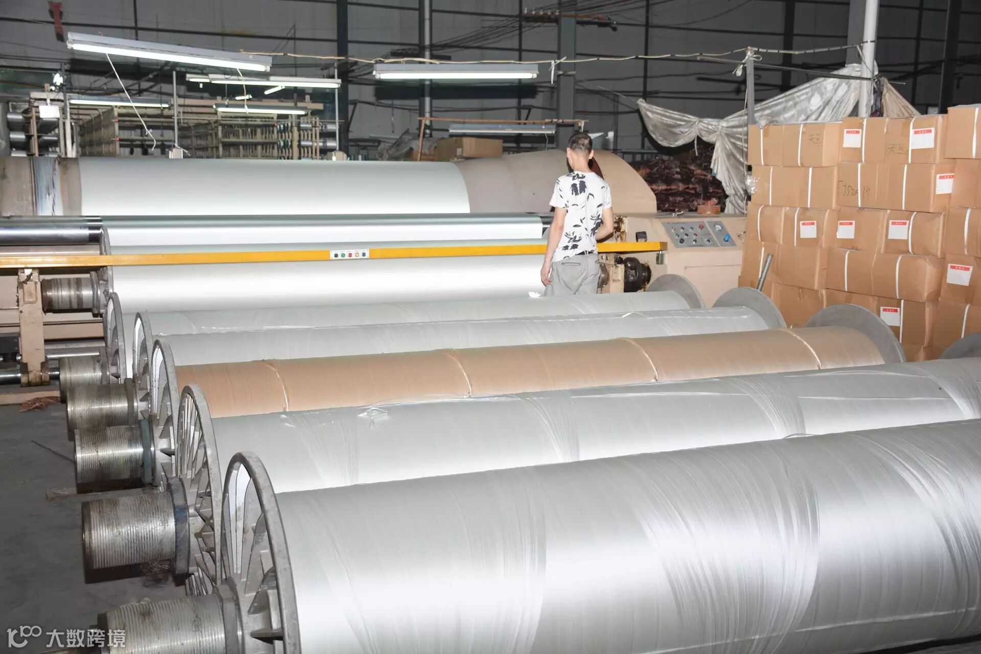 仓库里的工作人员正在对每一寸布料进行严格的检查。