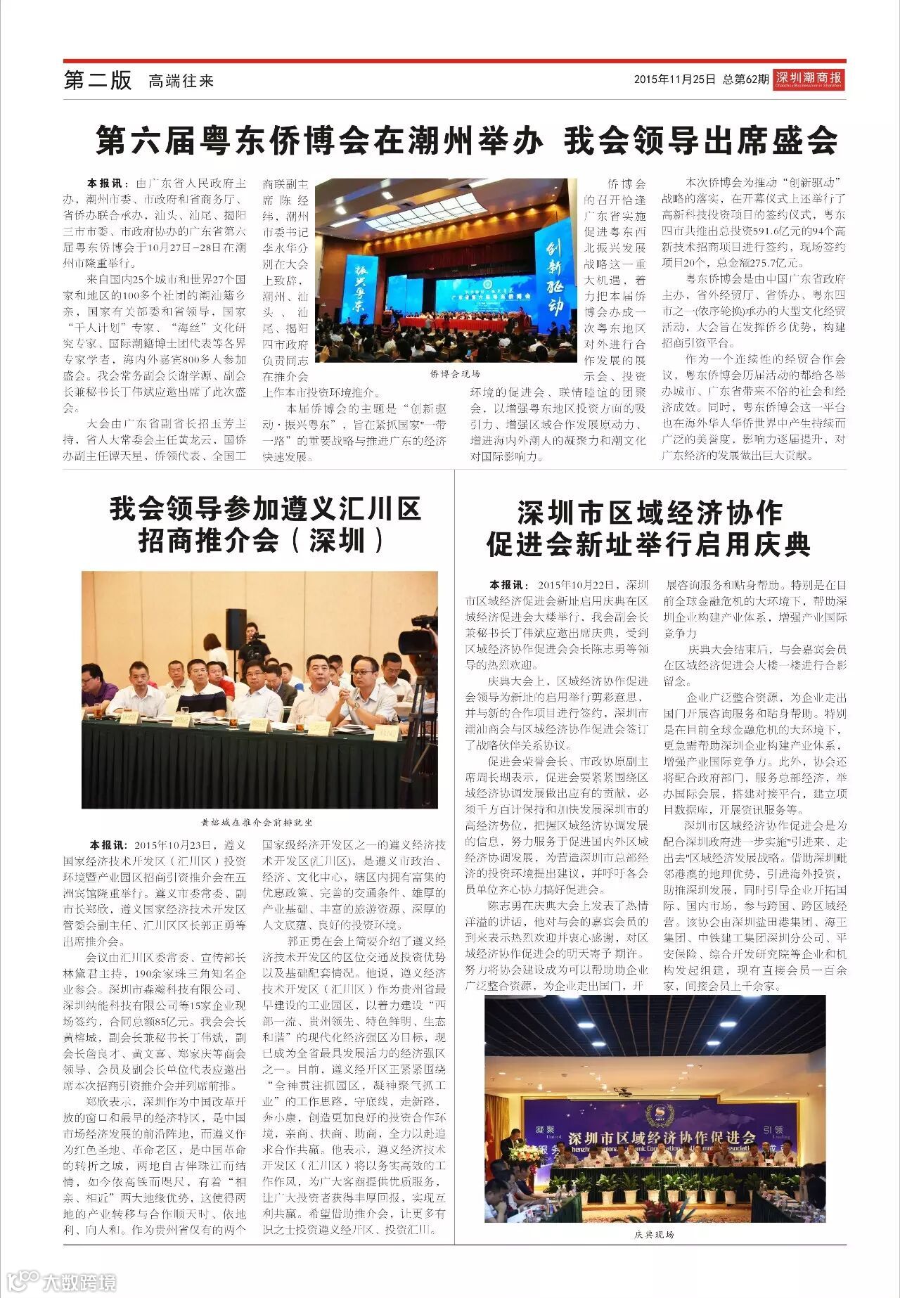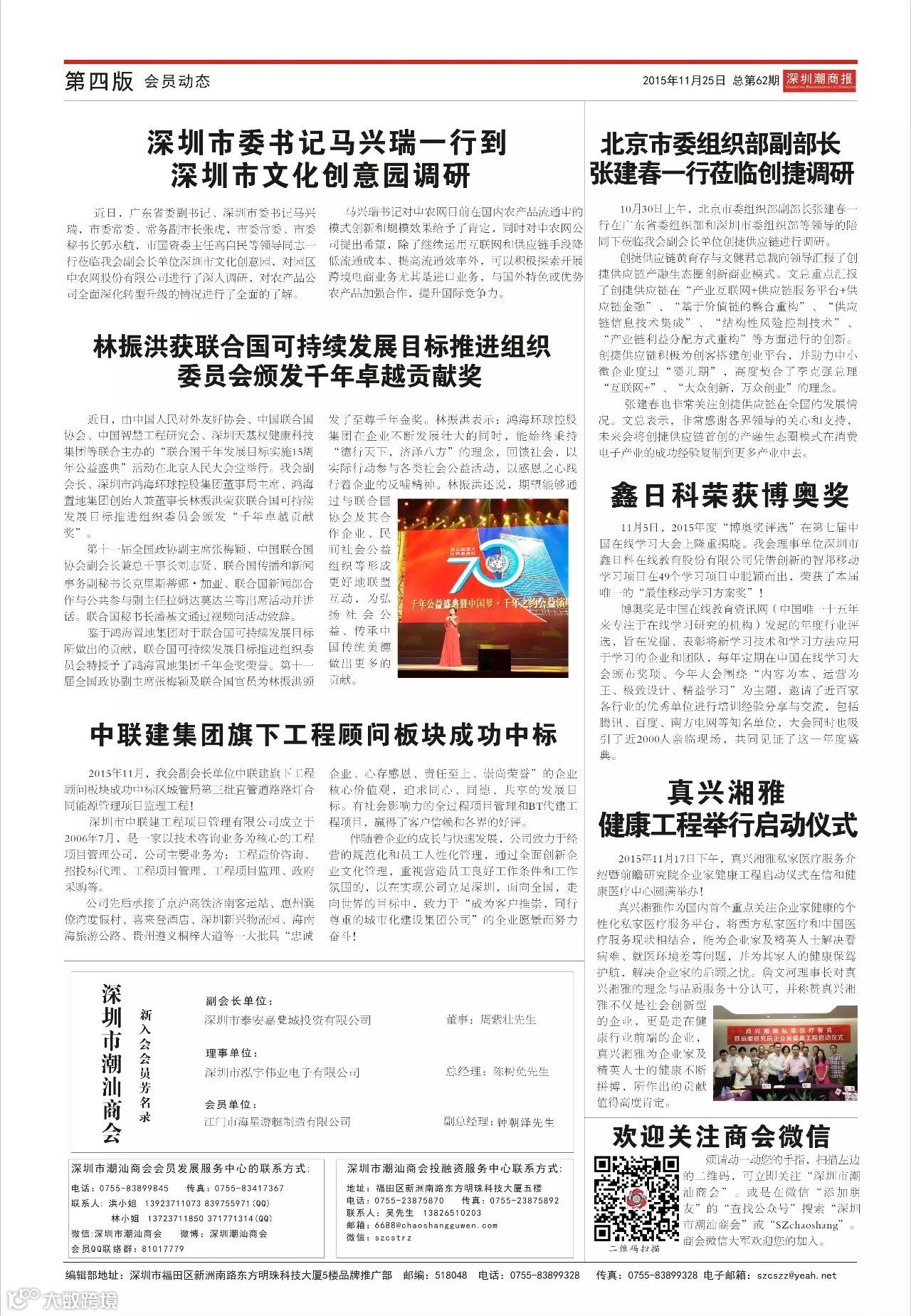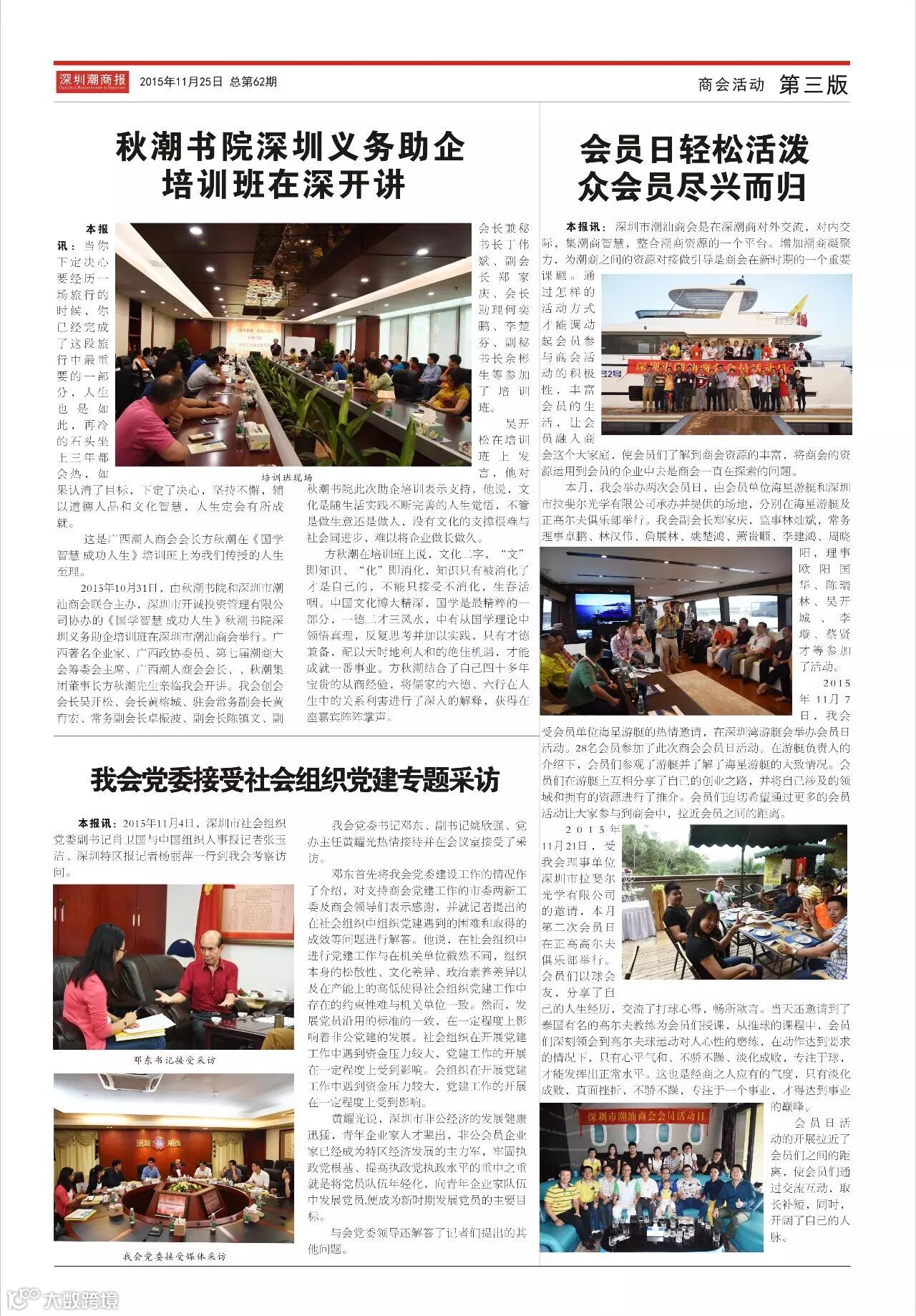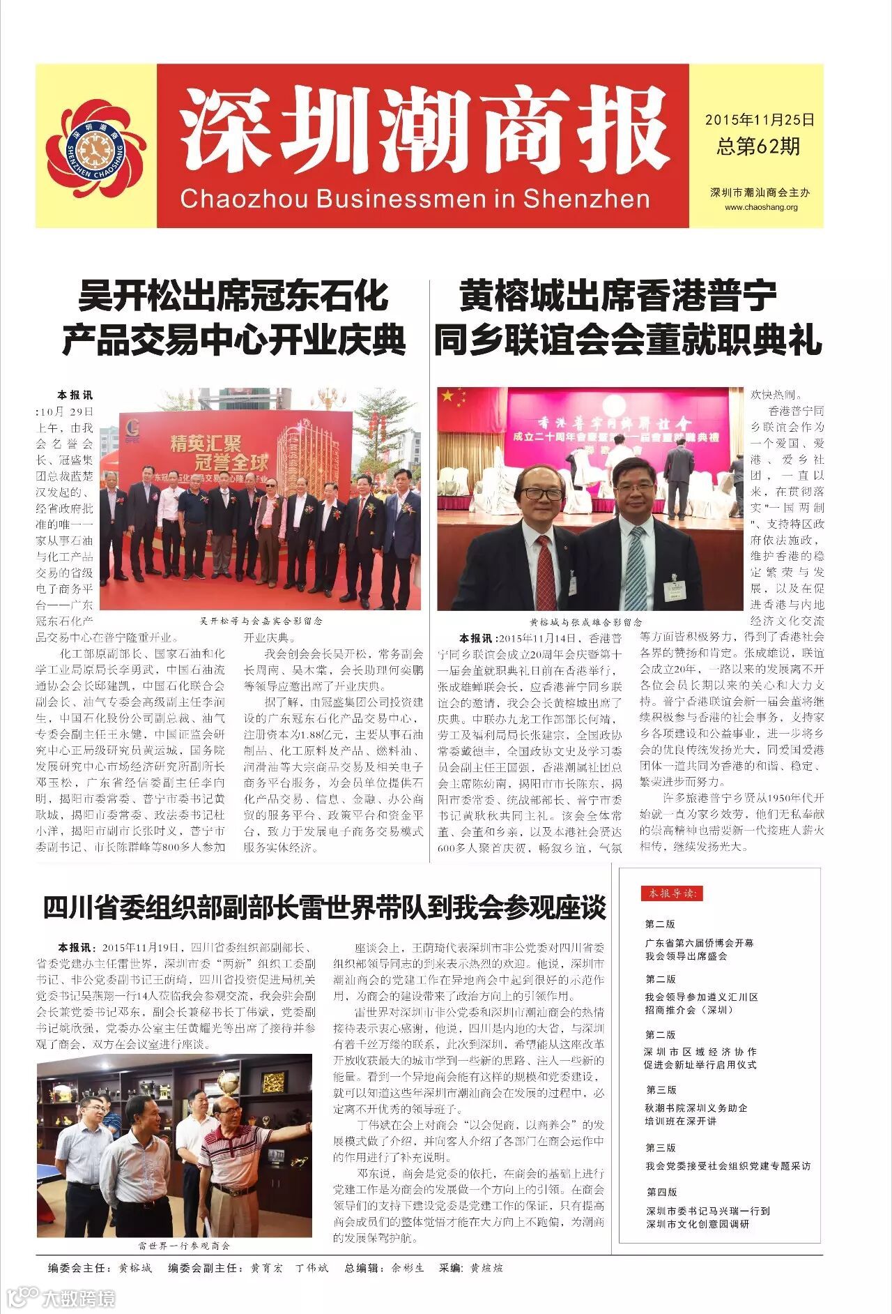 导读:尊敬的各位商会成员:《深圳潮商报》第62期已邮寄(平邮),请您查收。如您因地址更改或其他原因未能收到,请与会员部联系83899845、82857021。