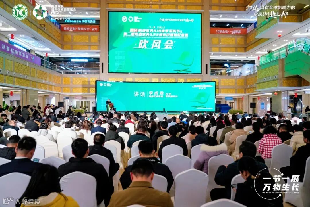 2月27号,2024南康家具3.18春季采购节&第二届南康家具3.28绿色供应链配套展吹风会在家居美学馆举办。区委常委、常务副区长李成胜出席活动并讲话,区家具产业促进局局长李庆伟,副局长沈春、侯悦俊江,区家具协会党支部书记钟裕华,常务副会长温世通、邓旺强、廖忠喧,区物流协会会长洪凌,家具新中心董事长曾庆宇,盈海家博城总经理肖仕超,家居美学馆负责人蓝海燕,区电商协会、家具协会分会等行业协会代表,以及区家具企业代表、各大家具卖场、品牌联盟企业、自媒体大咖代表,共计400余人参加了此次会议。