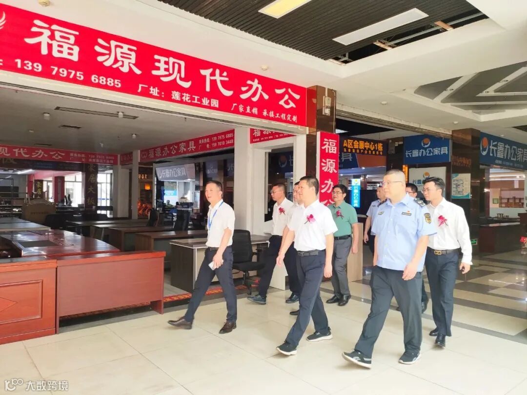开幕式后,盛捷达(南康)家居商业管理有限公司董事长助理及副总经理陪同区领导参观考察市场。