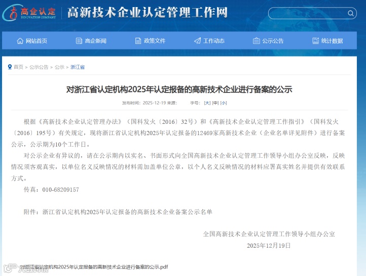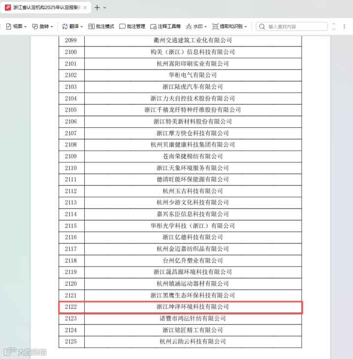 近日,全国高新技术企业认定管理工作领导小组办公室发布了《浙江省认定机构2025年认定报备的高新技术企业备案公示名单》,浙江坤泽环境科技有限公司(下称“坤泽环境”)凭借强劲的技术创新能力与研发实力,成功获评国家高新技术企业!