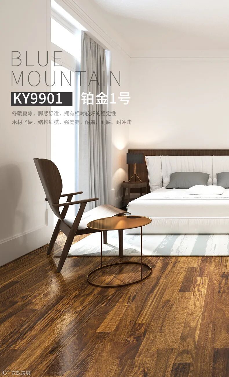 在光源照耀之下的铂金1号地板,有着金丝乌丝交错的纹路,这些纹路记录着百年的璀璨,像钻石那般流光溢彩;悦目的一瞬间,恍如与一只高贵又优雅的波斯猫凝视一般,令人深陷其中,而细腻滑润般的触感,令人自此珍藏于心底。